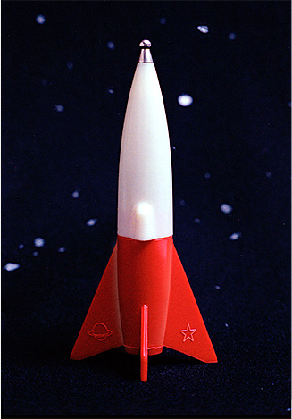 The low technology of the crystal radio and the high technology of space travel somehow made a potent combination. There were many toy crystal radios made with space themes, especially in that late-’50s to late-’60s decade that culminated in Neil Armstrong’s walk on the moon. This Miniman MG-305 (Japan) shown here is one of the many rocket-shaped crystal radios made during that time by many different makers.