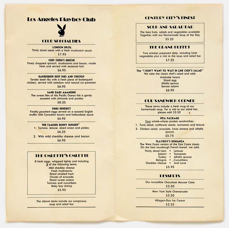 And below is shown the inside of the Playboy Club Menu seen above. What’ll you have?
