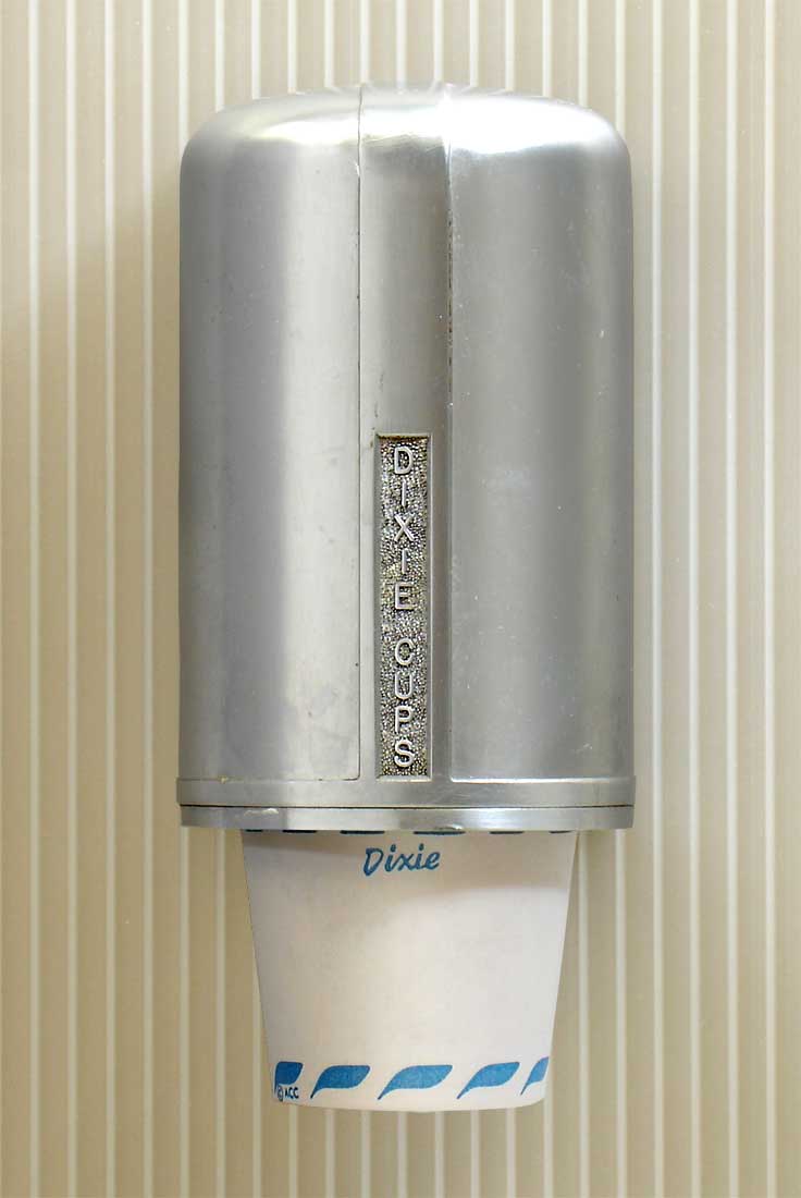 The cup may be disposable but this dispenser isn’t going anywhere. It’s quite hefty and appears to be cast aluminum, Dixie Cup Co., Easton, PA, Chicago. c.1940s.