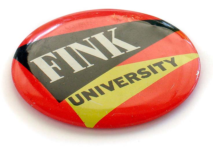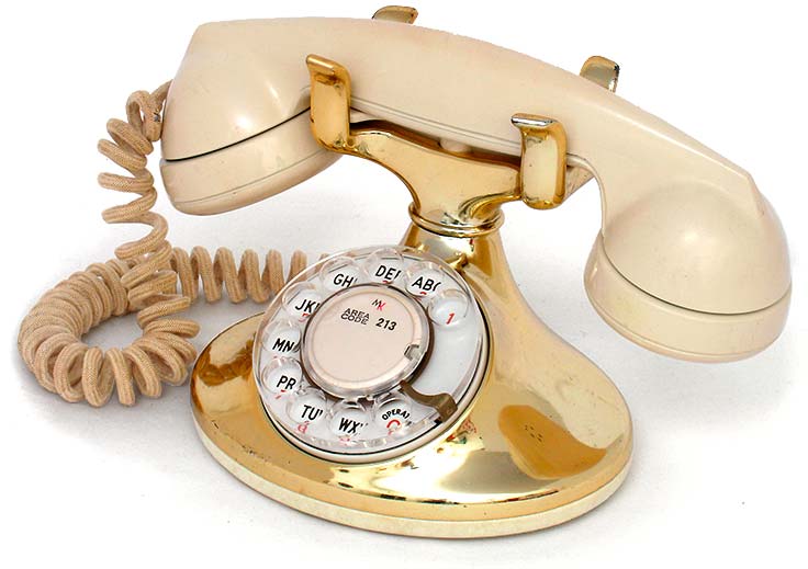 The phone is a 1950s Imperial model from Western Electric, and the Fink University pinback button was from Mad Magazine (1960s). The distinctive Paper Mate Lady Capri pen is dated 1957.