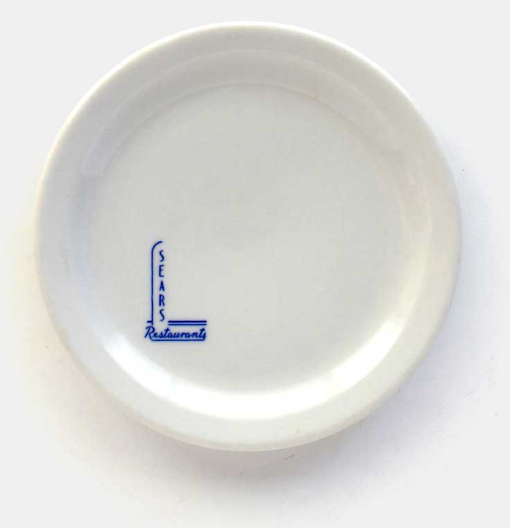 The 6-3/8 inch Sears Restaurants plate says on the back: Shenango China, New Castle, PA. U.S.A.